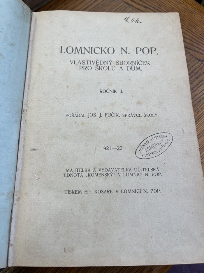 svázané ročníky sborníku města Lomnice nad Peplou z let 1921-1925 ročníky II-V