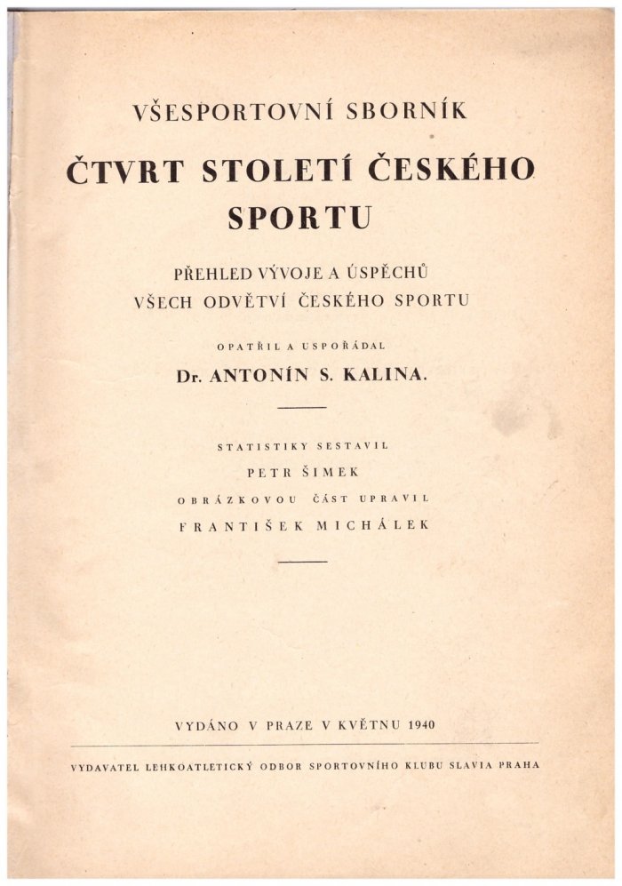 opatřil a uspořádal Antonín S[vatopluk] Kalina ; statistiky sestavil Petr Šimek ; obrázkovou část upravil František Michálek